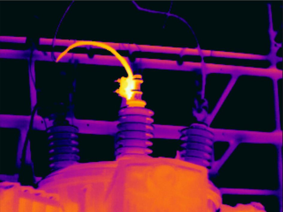 以下是两张电力线隔离器的红外图像。为了便于分析隔离器内的温度变化,已将右图中的温标更改为接近隔离器温度的值。