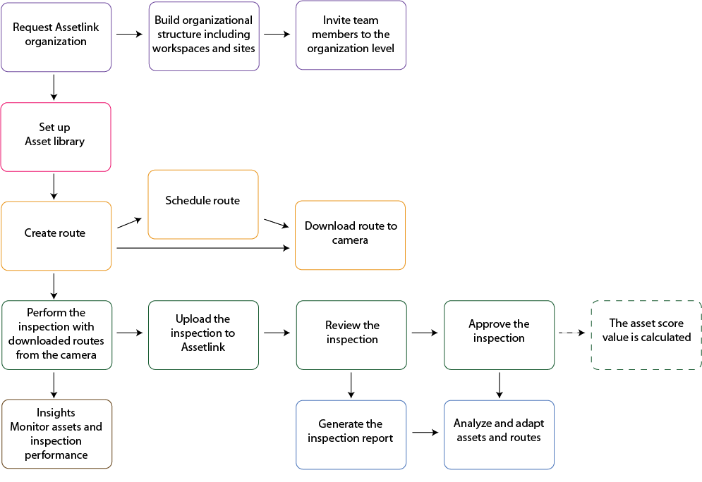 Flir Assetlink is a role-based access control system where added users are given different permissions depending on the role they are assigned. The Organization admin can control who can view and edit the organization and assets. By granting access to shared routes, images, files and reports while maintaining the correct permissions, it is possible to collaborate securely according to the needs of the organization.