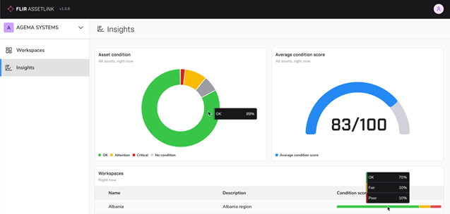 In Insights, the user gets an overview of which assets have been inspected, which are OK, which need to be addressed and which are critical based on the specified condition. The user can keep track of the condition of the assets at all levels.